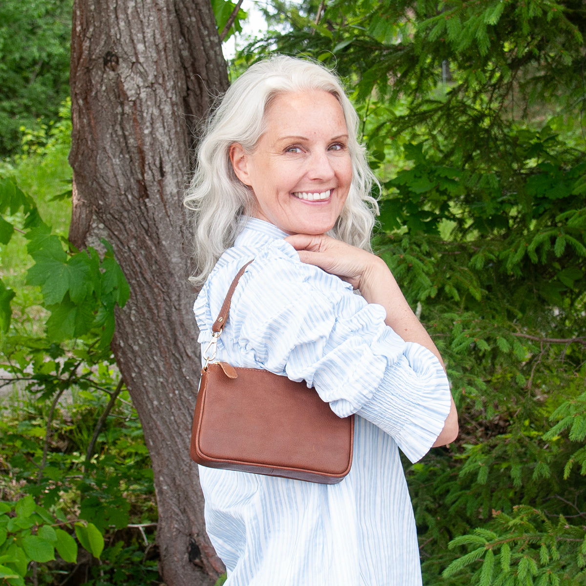 Veske LIAN clutch i skinn med dobbel rem - brun