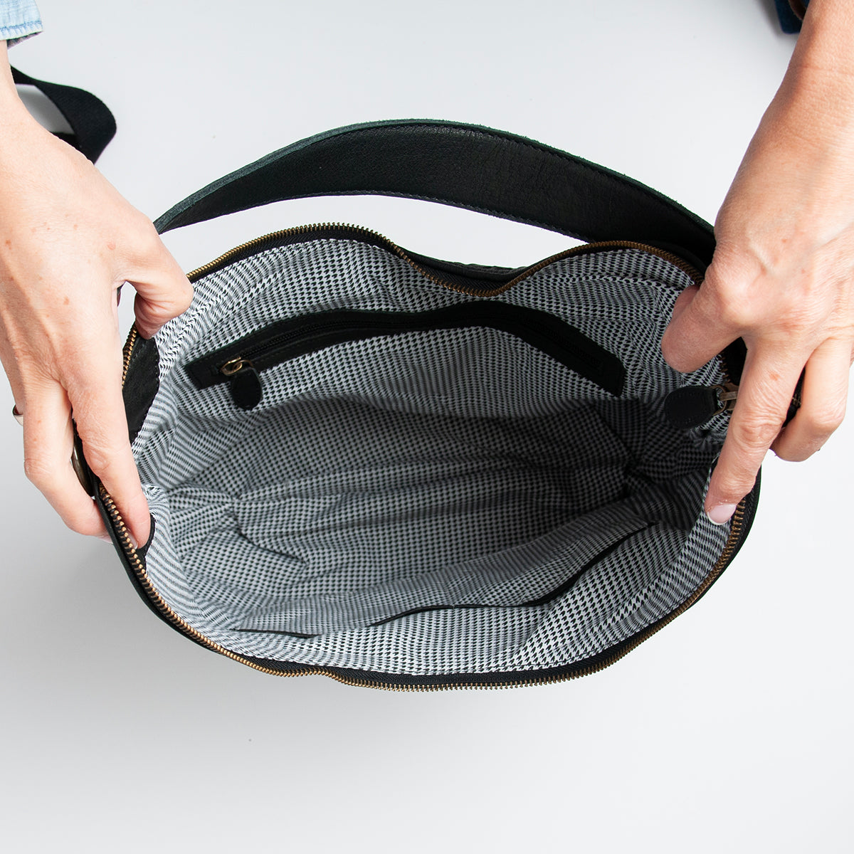 Veske LOTUS stor flette bag i skinn med dobbel rem - svart