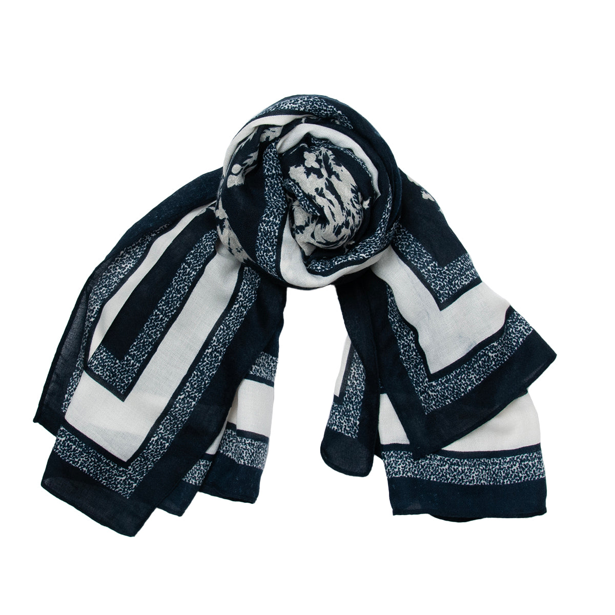 Skjerf, Mykt skjerf bred kant blomster print - blå