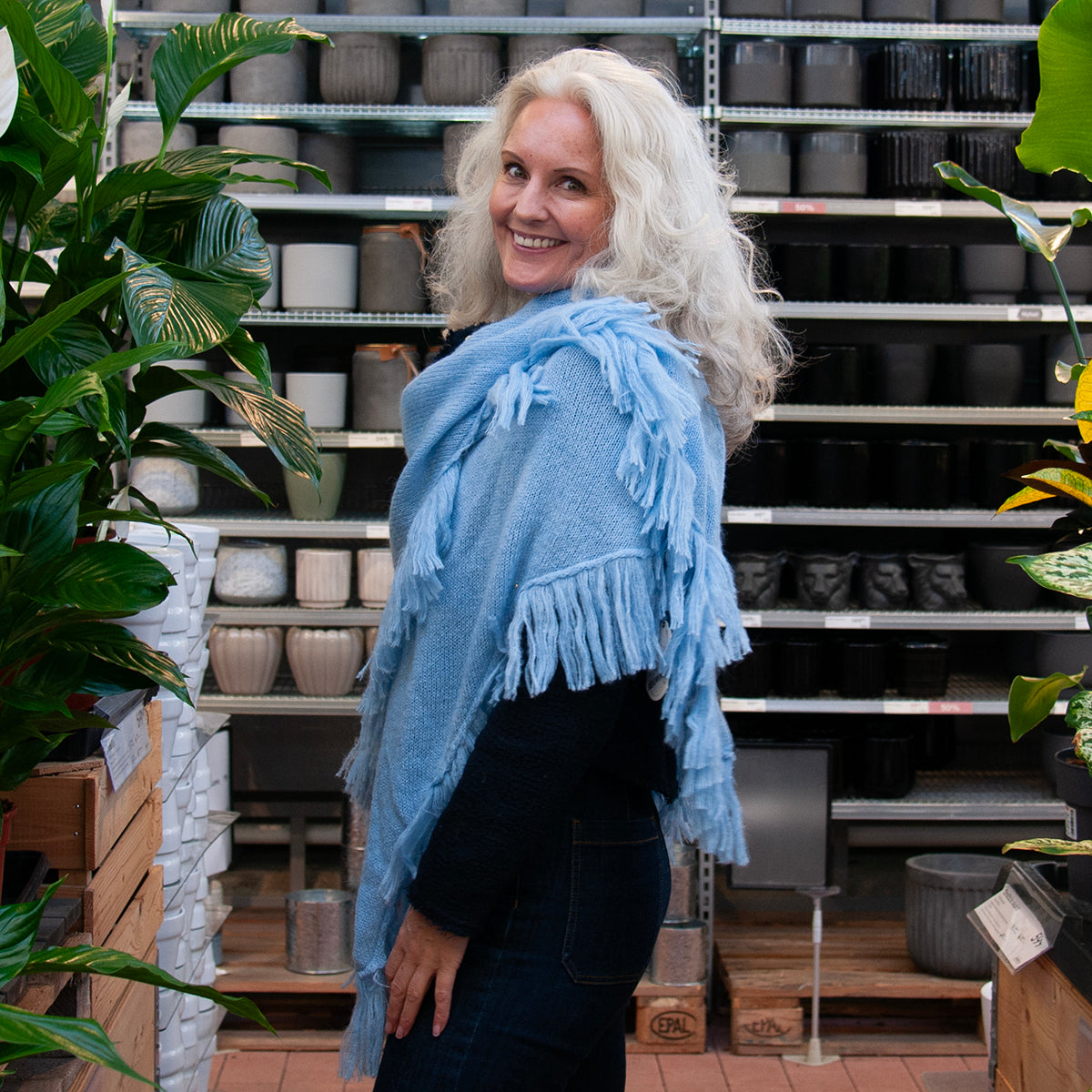 The shawl comes in 3 beautiful seasonal colours; Light beige, jeans blue and olive green