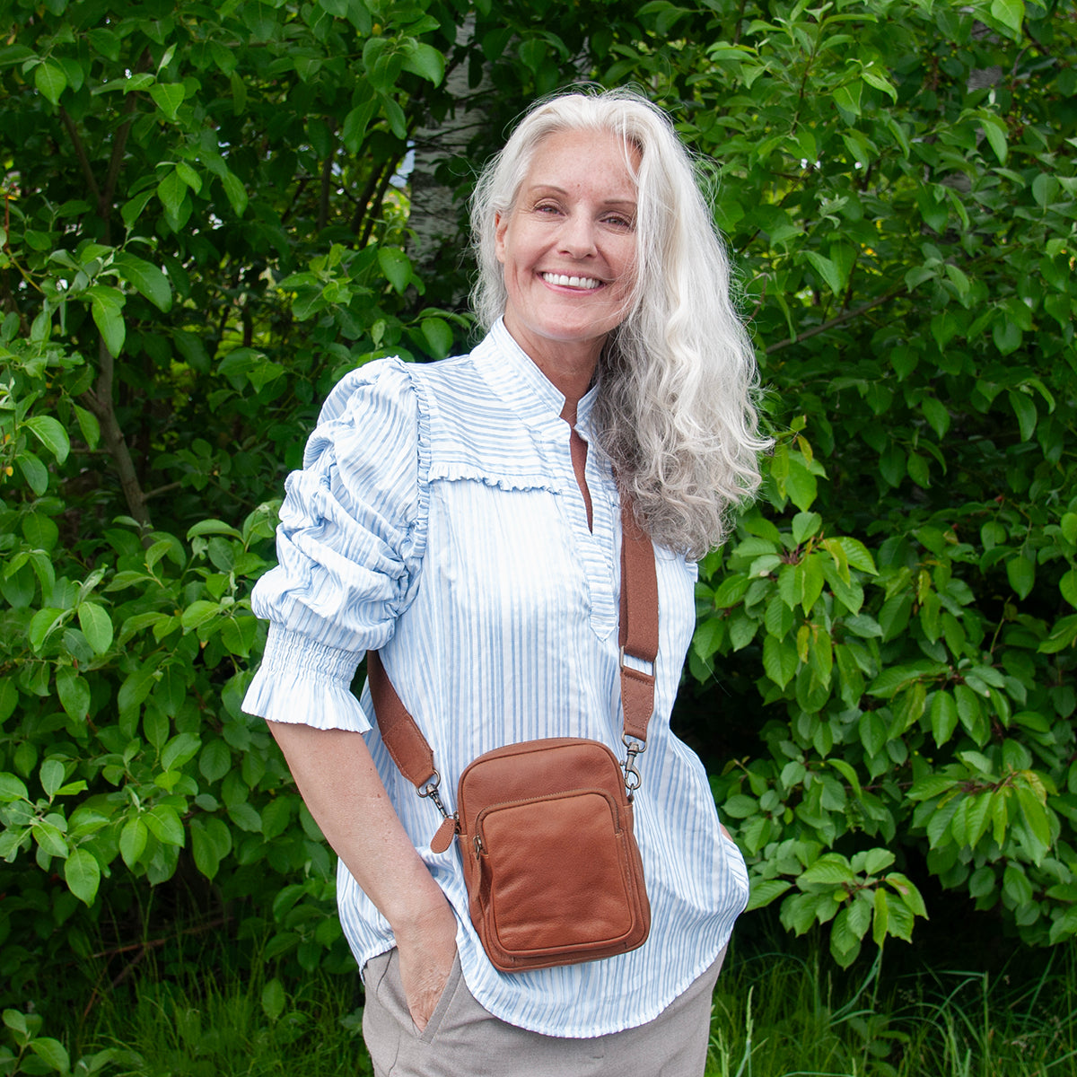 One of our best-selling bag models is now also available in leather. Leather gets finer and finer with use.