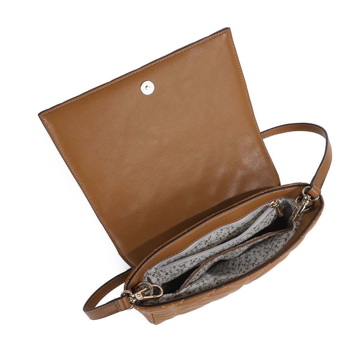 This is the perfect small clutch for both everyday life and parties. The bag has a trendy waffle pattern sewn into the bag. NANNA is a small clutch that has room for the most important things you need. The bag closes with a flap and magnetic lock. The inner lining has a delicate pattern in light beige with small brown dots in 100% polyester.