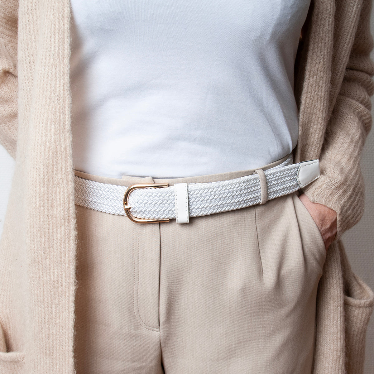 Belte (6 stk) flettet strikkbelte, gull - hvit