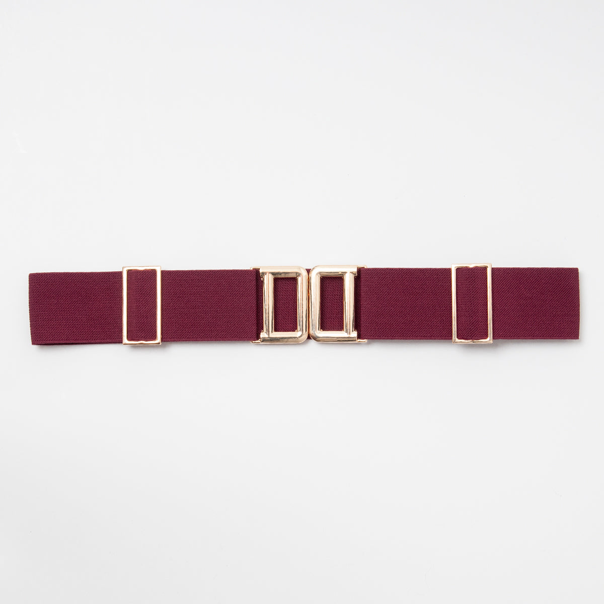 Belte (6 stk) elastisk belte one size 5 cm vidde / Firkantet gull spenne - burgunder