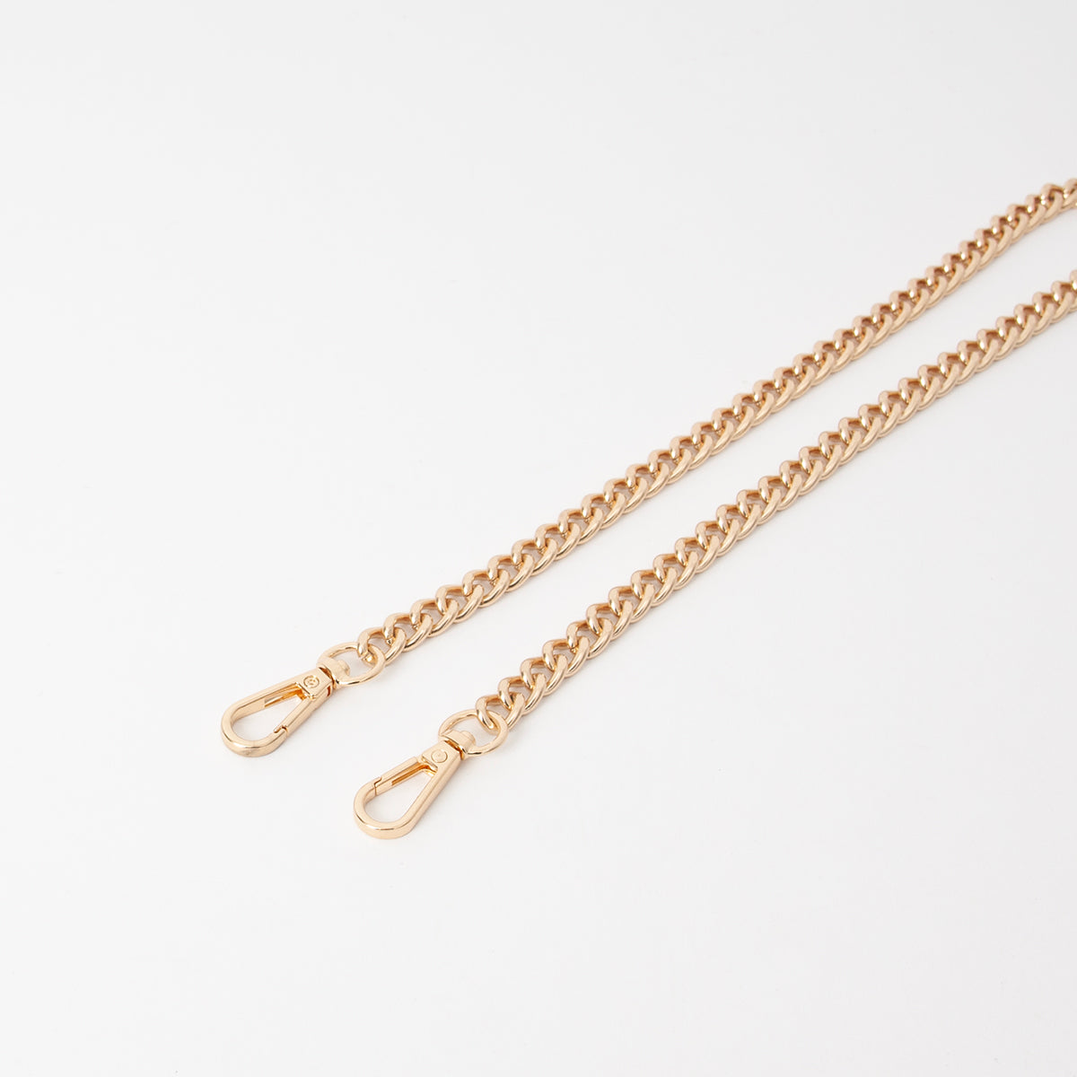 Gold-colored chain as a shoulder strap, attached with hooks. The metal is made of gold-coloured copper.