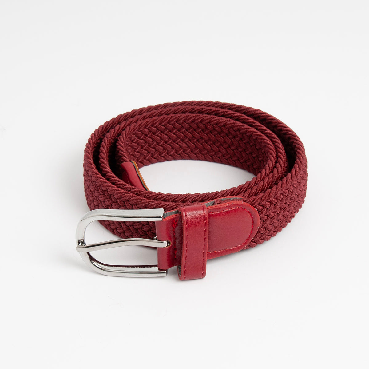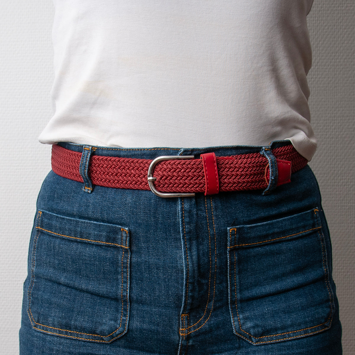 Belte (6 stk) flettet strikkbelte, sølv - burgunder