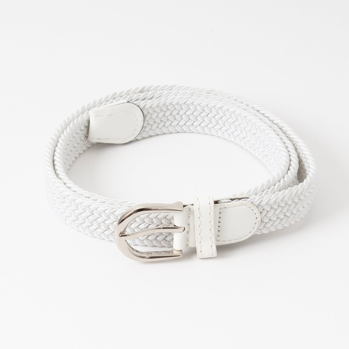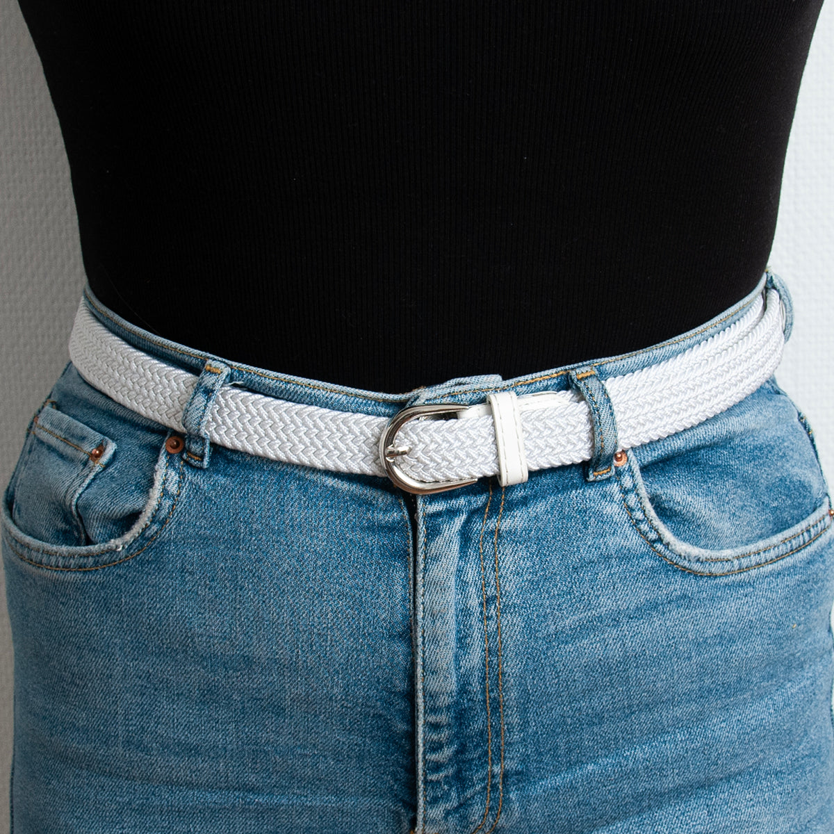 Belte (6 stk) smalt flettet strikkbelte, sølv - hvit