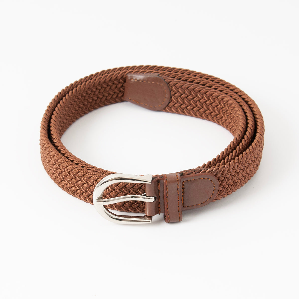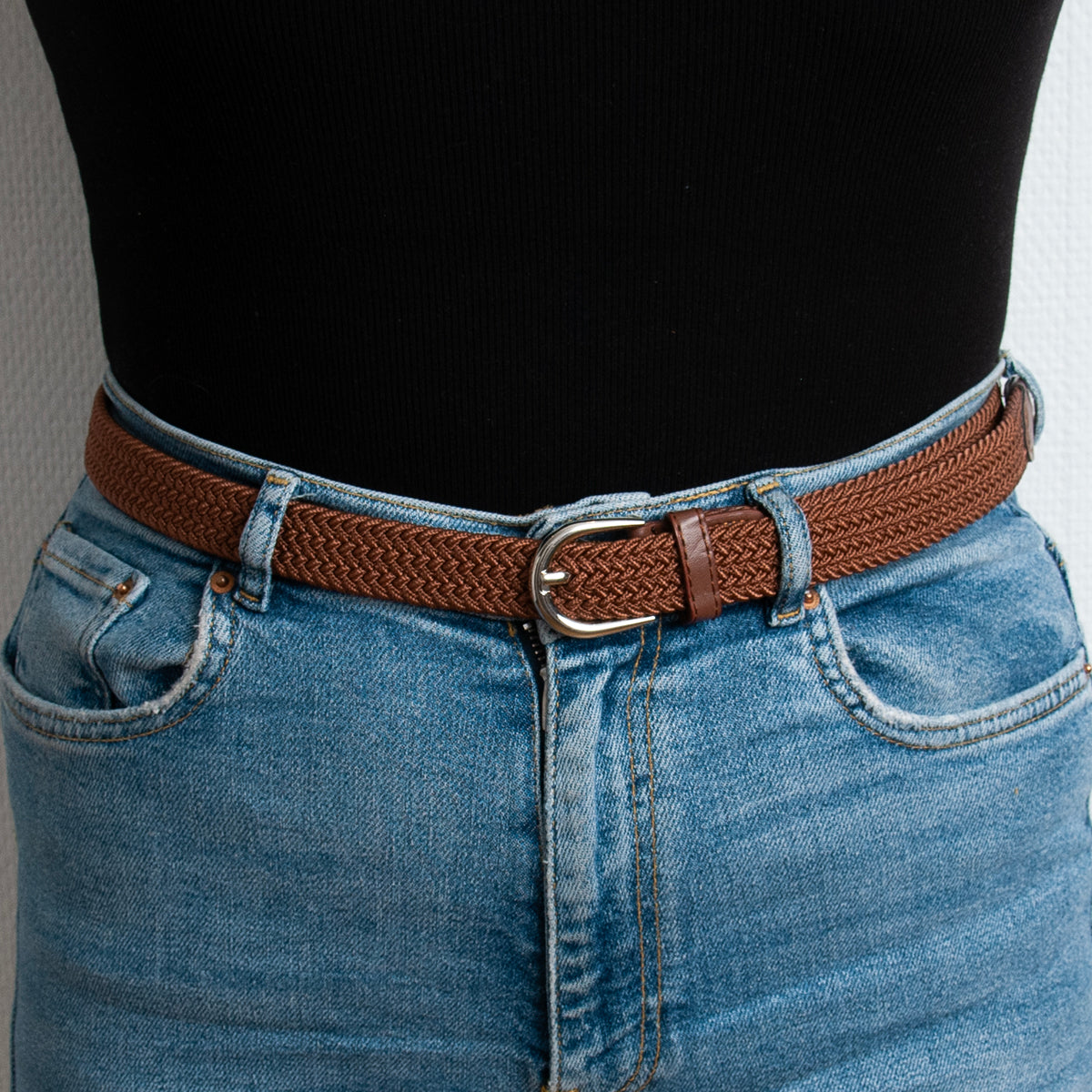 Belte (6 stk) smalt flettet strikkbelte, sølv - cognac