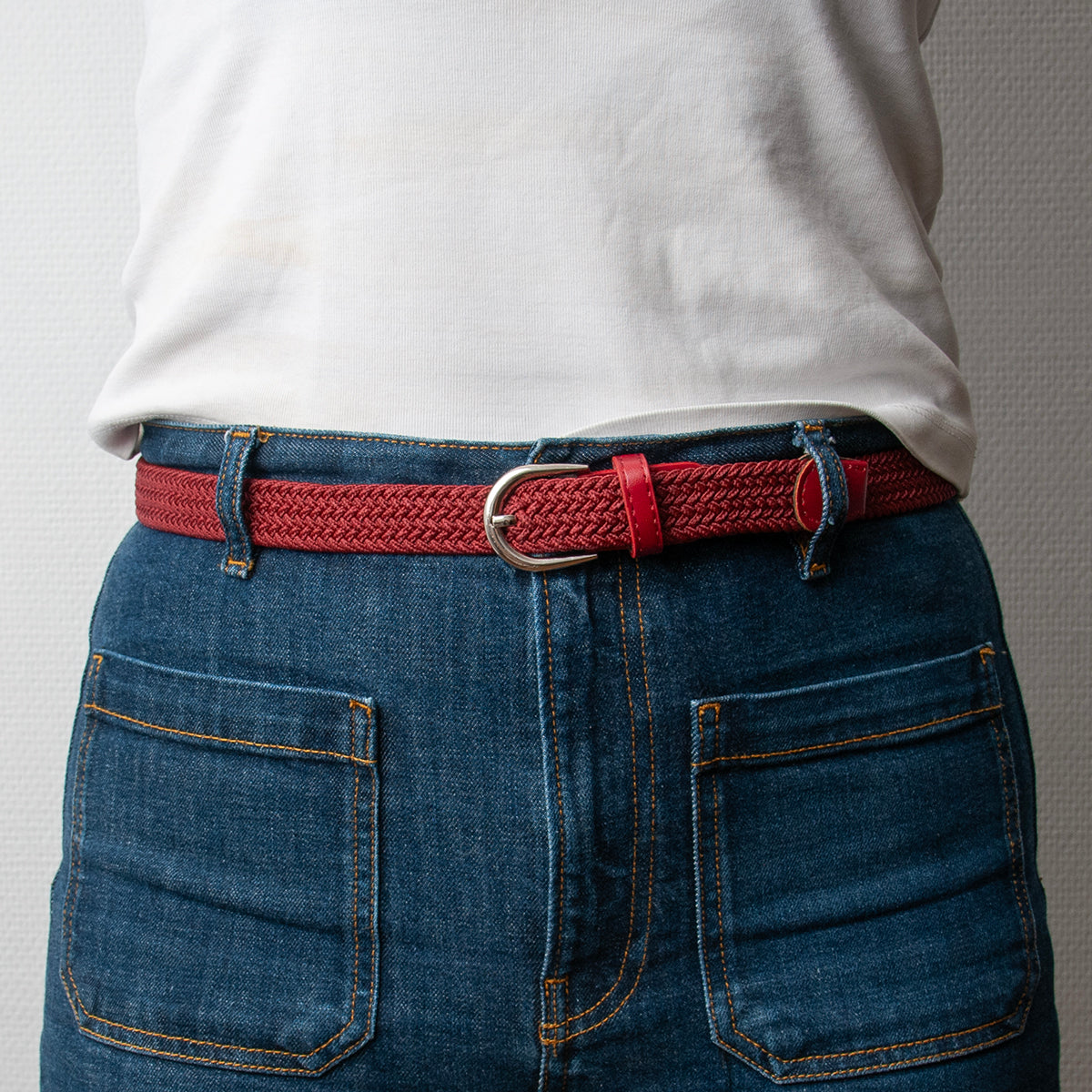 Belte (6 stk) smalt flettet strikkbelte, sølv - burgunder